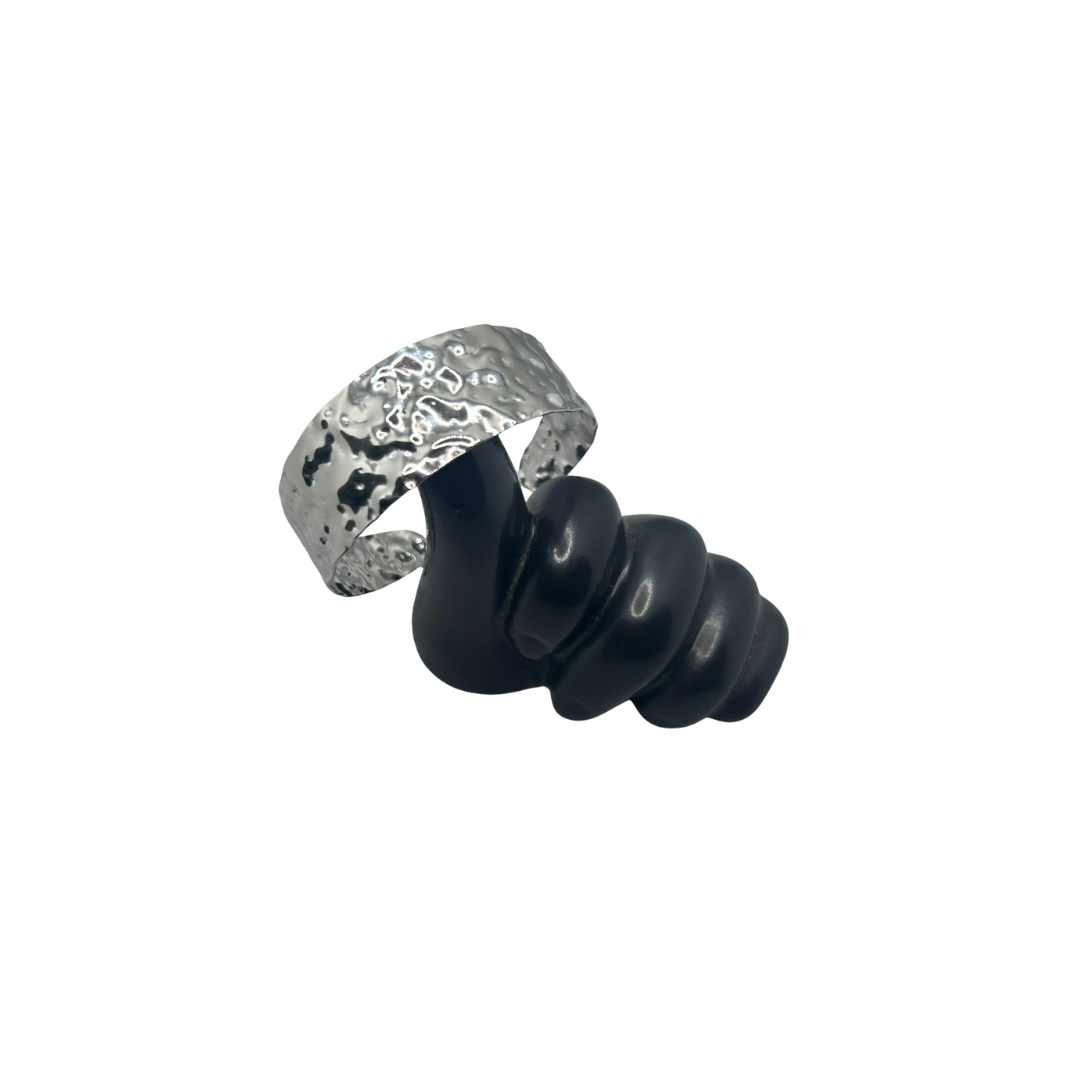 Un diseño contemporáneo con espíritu artesano: este brazalete abierto en acero inoxidable 304 con acabado plateado presenta una textura martelé irregular que refleja sutilmente la luz. Su forma minimal y ajustable abraza la muñeca con suavidad, aportando un aire moderno y orgánico a tu estilismo. Perfecto para llevar solo o combinar con otras piezas, es el complemento ideal para un look lleno de personalidad.
