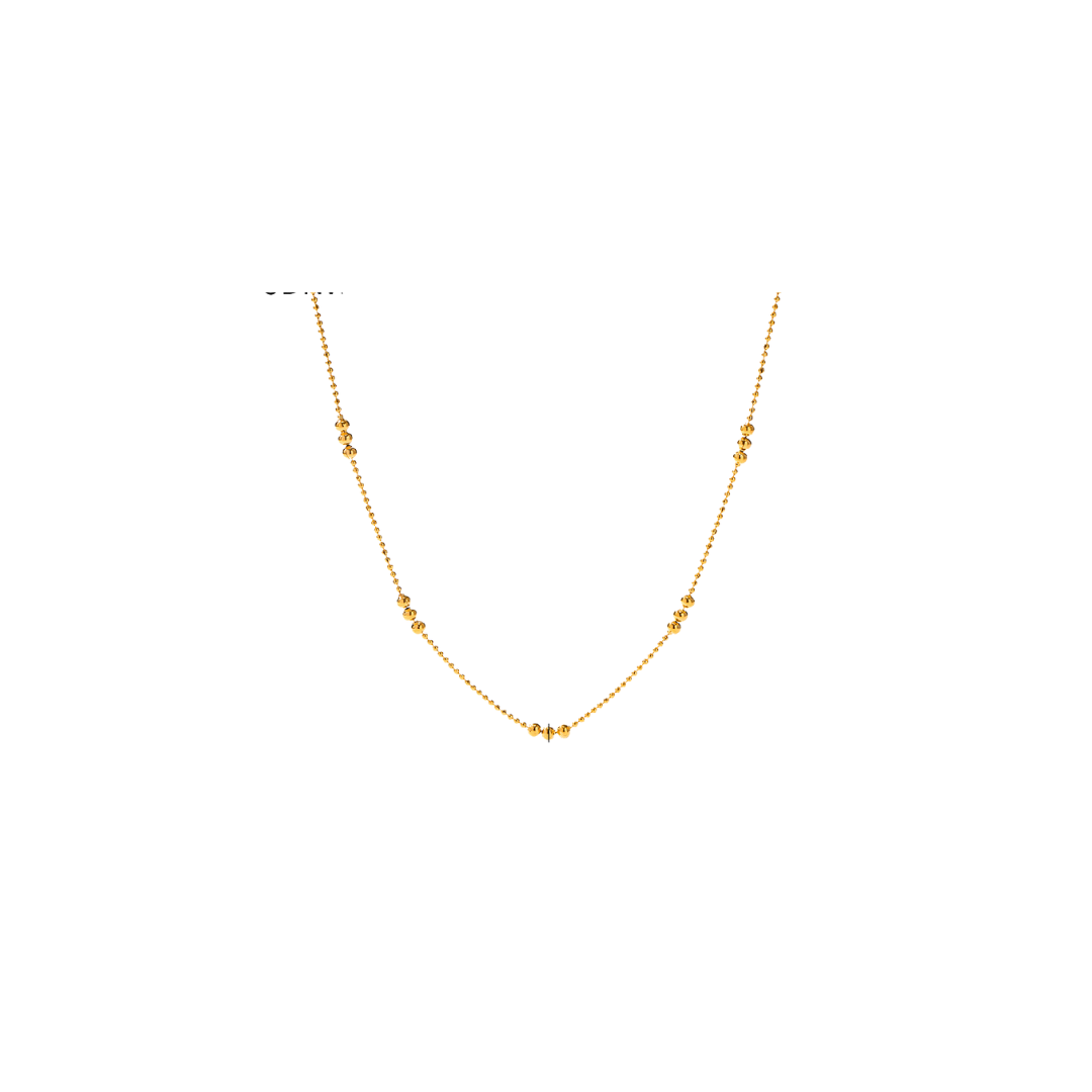 Minimalismo con un toque de brillo. Este collar combina la suavidad de una cadena de esferas pequeñas con acentos más marcados que le dan personalidad sin perder elegancia. Una joya ligera pero con carácter, perfecta para acompañarte tanto en una tarde de verano como en un cóctel al atardecer.