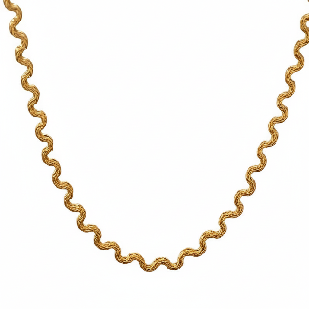 ¡Desafía la moda con el Collar Elsa! Hecho con acero inoxidable 304 y bañado en oro 18k, su forma ondulada te hará destacar en cualquier situación. Combina elegancia y minimalismo para un look arriesgado y original. ¡Inspira a tomar riesgos con su estilo único!