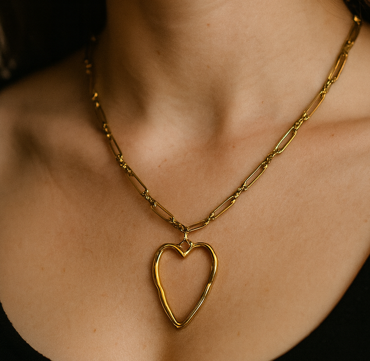 Collar Nora: elegancia minimalista en acero inoxidable 316. Esta cadena versátil presenta un delicado colgante con silueta de corazón que captura la esencia del amor en su forma más pura. El cierre tipo T garantiza seguridad y facilidad de uso diario. Resistente a la corrosión y hipoalergénico, es la pieza perfecta para quienes buscan joyería duradera que combine estilo contemporáneo con significado emocional. Un accesorio versátil que complementa cualquier look, desde lo casual hasta lo sofisticado.