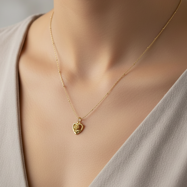 Collar Anna en acero inoxidable 316 con baño de oro 18K, diseñado para quienes buscan elegancia atemporal. Este delicado colgante alberga un corazón y una rosa en su interior, símbolos de amor y belleza que se revelan con cada movimiento. Perfecto para cualquier ocasión, desde el día a día hasta momentos especiales, combina durabilidad con un acabado sofisticado. Una joya versátil que se adapta a tu estilo personal y se convierte en un accesorio imprescindible en tu colección.