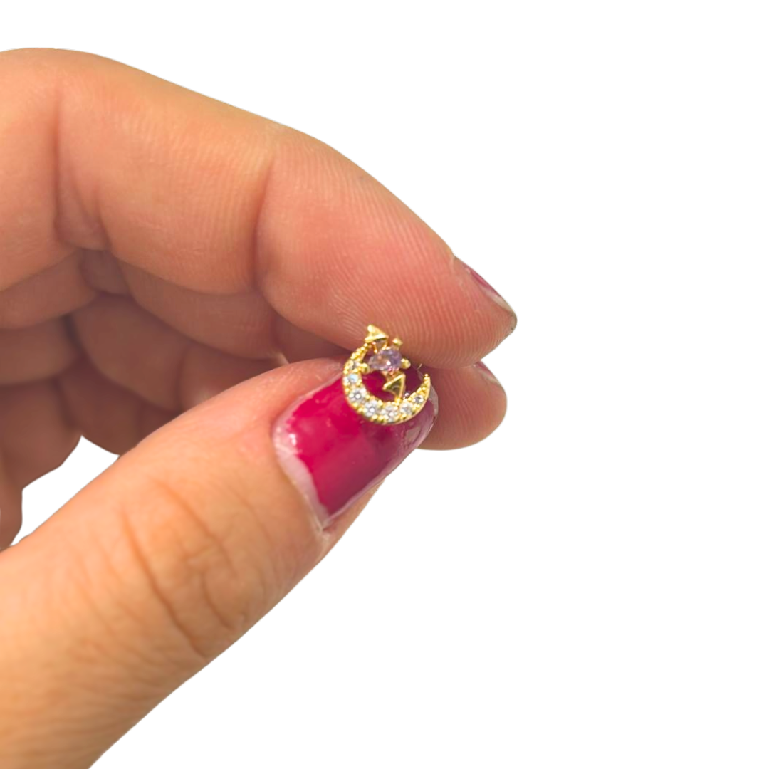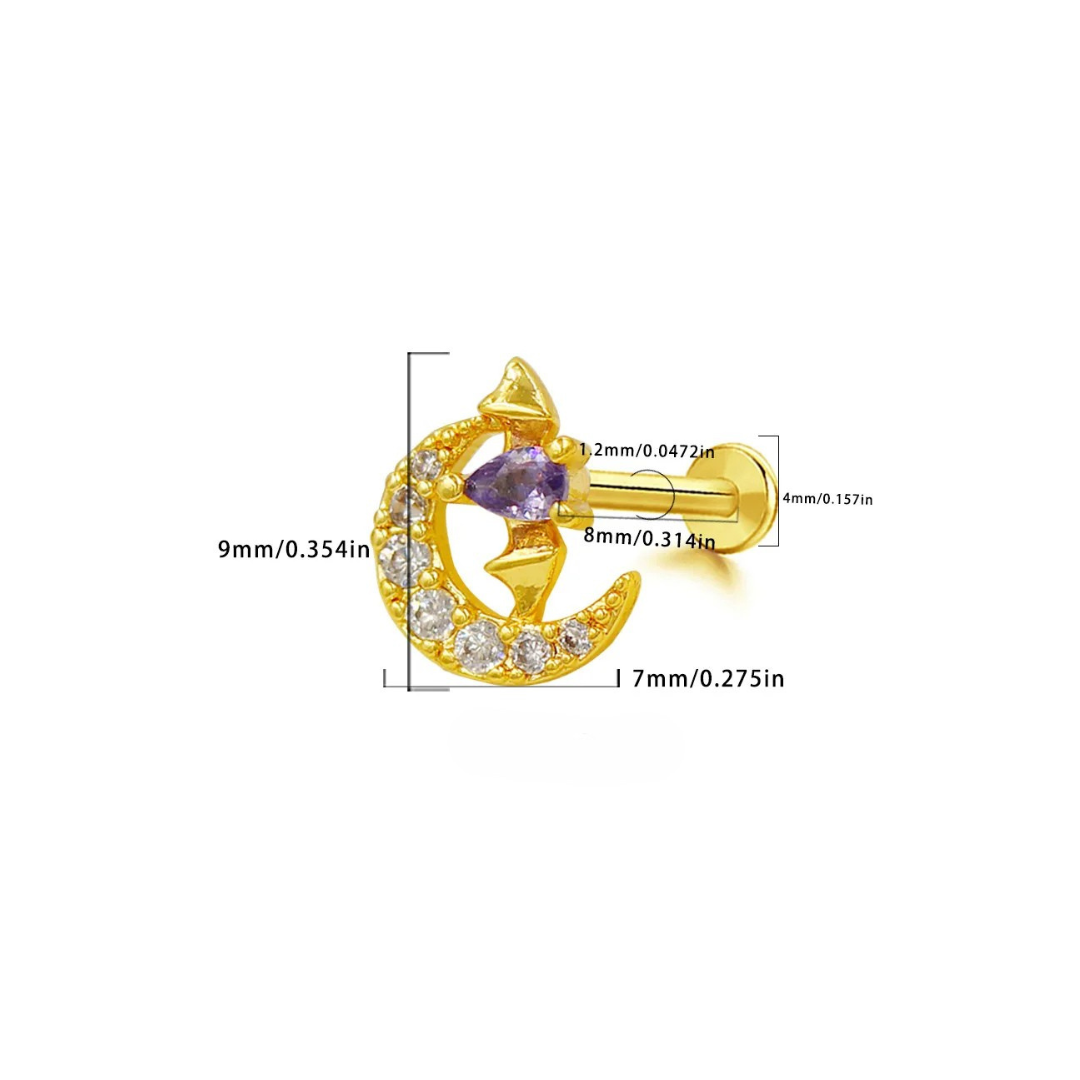 Labret con luna creciente pavé y gema central lila en talla navette.