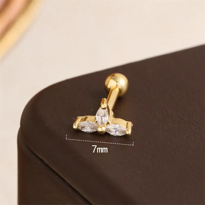 El Trinity 18K es delicado y luminoso. Su diseño con tres circonitas engastadas en disposición triangular brilla con elegancia en cada movimiento. Fabricado en acero inoxidable chapado en oro 18K, es resistente y perfecto para ear stacking o para llevar como piercing único.