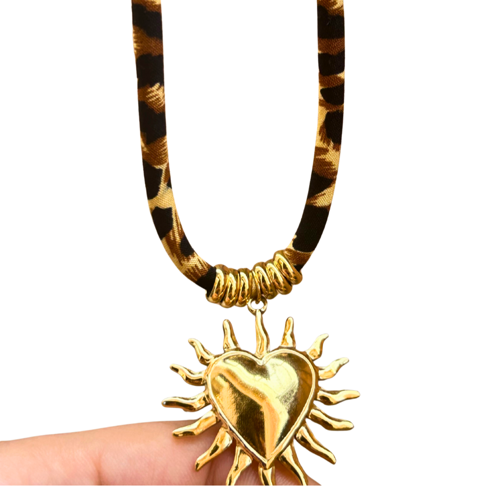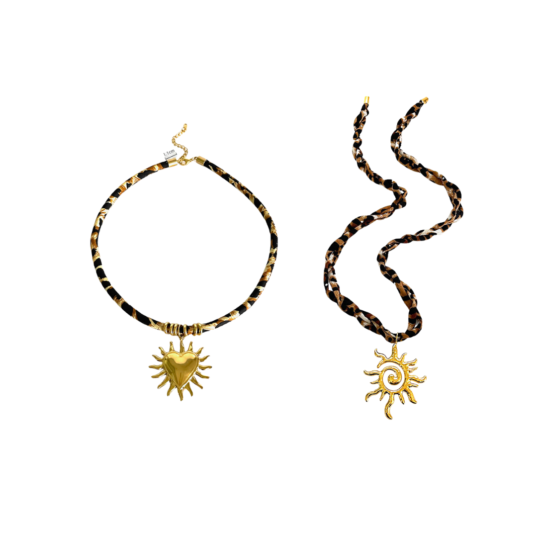 El Collar Savage combina la fuerza del espíritu animal con un aire místico: su cuerda trenzada de nylon luce un estampado de leopardo que evoca la energía salvaje, mientras que los remates en acero inoxidable 316 L chapado en oro de 18 k aportan un brillo duradero. Disponible en dos variantes intercambiables, ofrece: